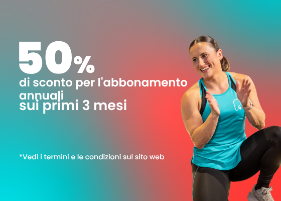 Risparmia -50% di sconto per l’abbonamento annuale sui primi 3 mesi, o ottieni l’abbonamento mensile con il -50% di sconto sul primo mese.